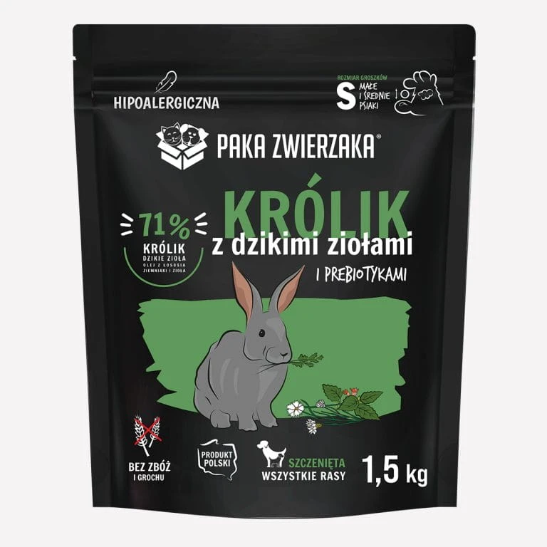 Karma sucha dla psa królik z dzikimi ziołami PUPPY S 1,5 kg PAKA ZWIERZAKA