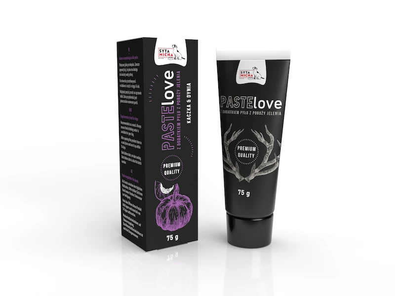 PASTElove Syta Micha z kaczką i dynią to naturalna, mięsna pasta dla psa w wygodnej tubce. Powstała z wysokiej jakości składników Human Grade, dzięki czemu stanowi zdrową i pyszną przekąskę dla psów w każdym wieku – od szczeniaka po seniora.